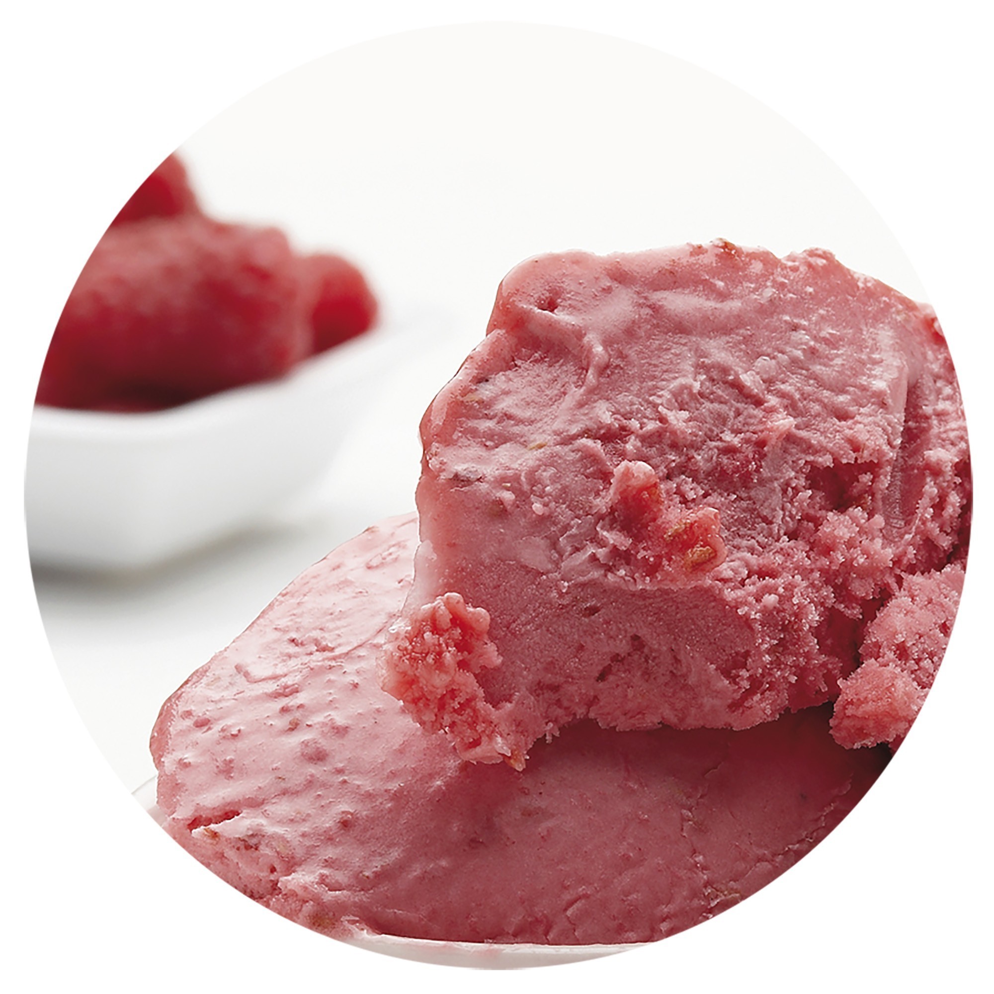 Cubeta de 2,5 litros de helado de frambuesa. Textura ligera y refrescante con sabor intenso a frambuesa.