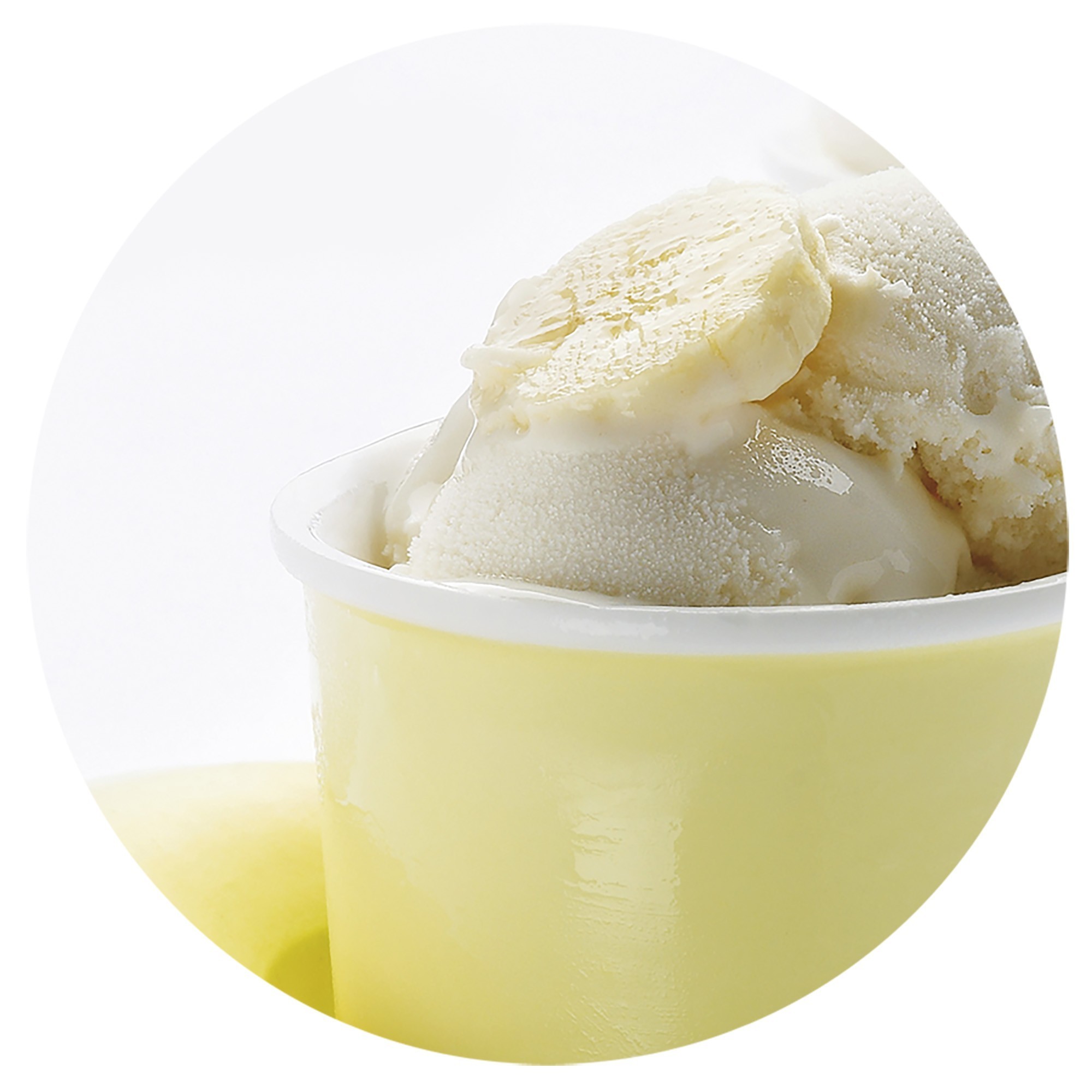 Cubeta de 5 litros de sorbete de plátano. Refrescante y ligero con delicioso sabor a plátano.