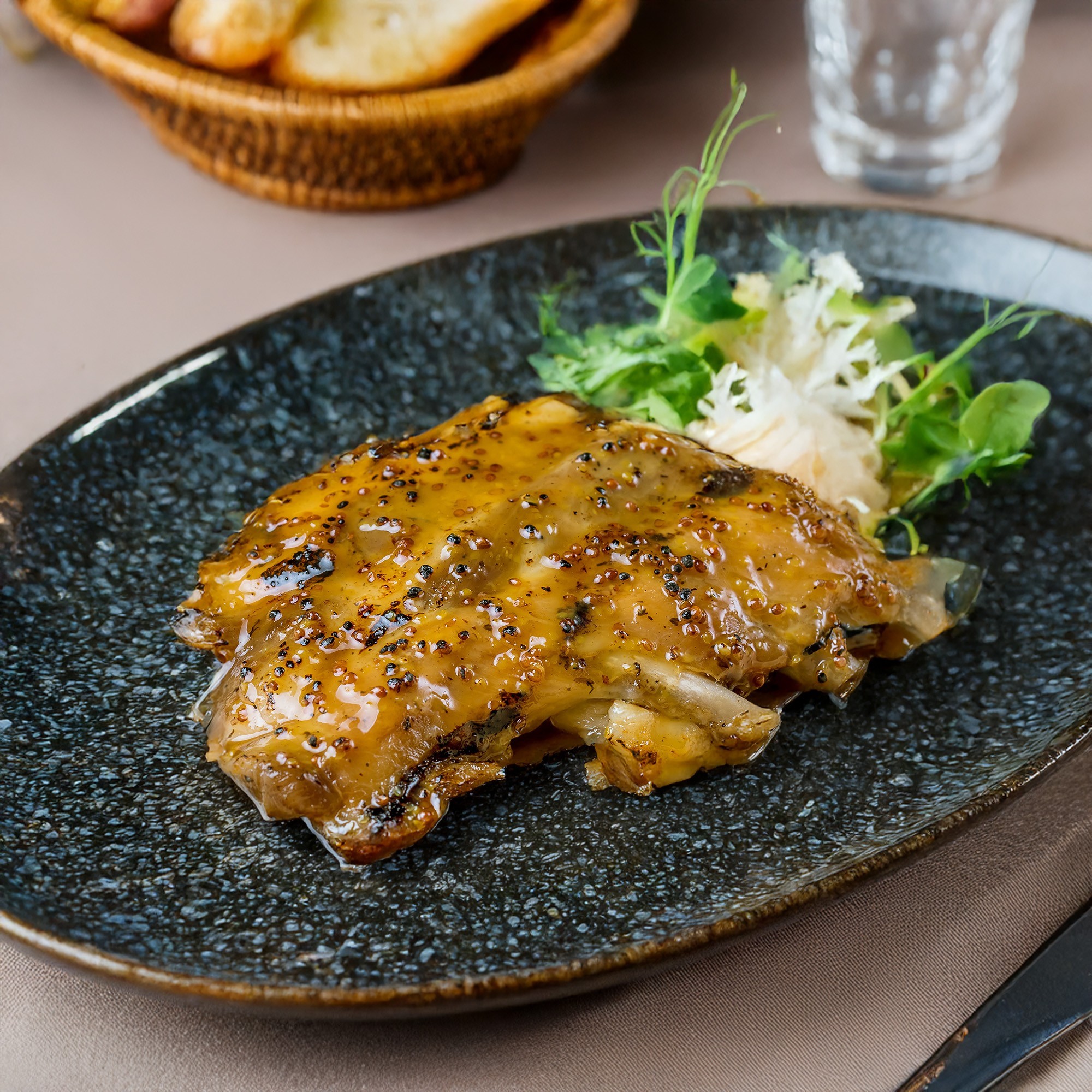 Deliciosas y sabrosas costillas de cerdo cocinadas en salsa de miel y mostaza.