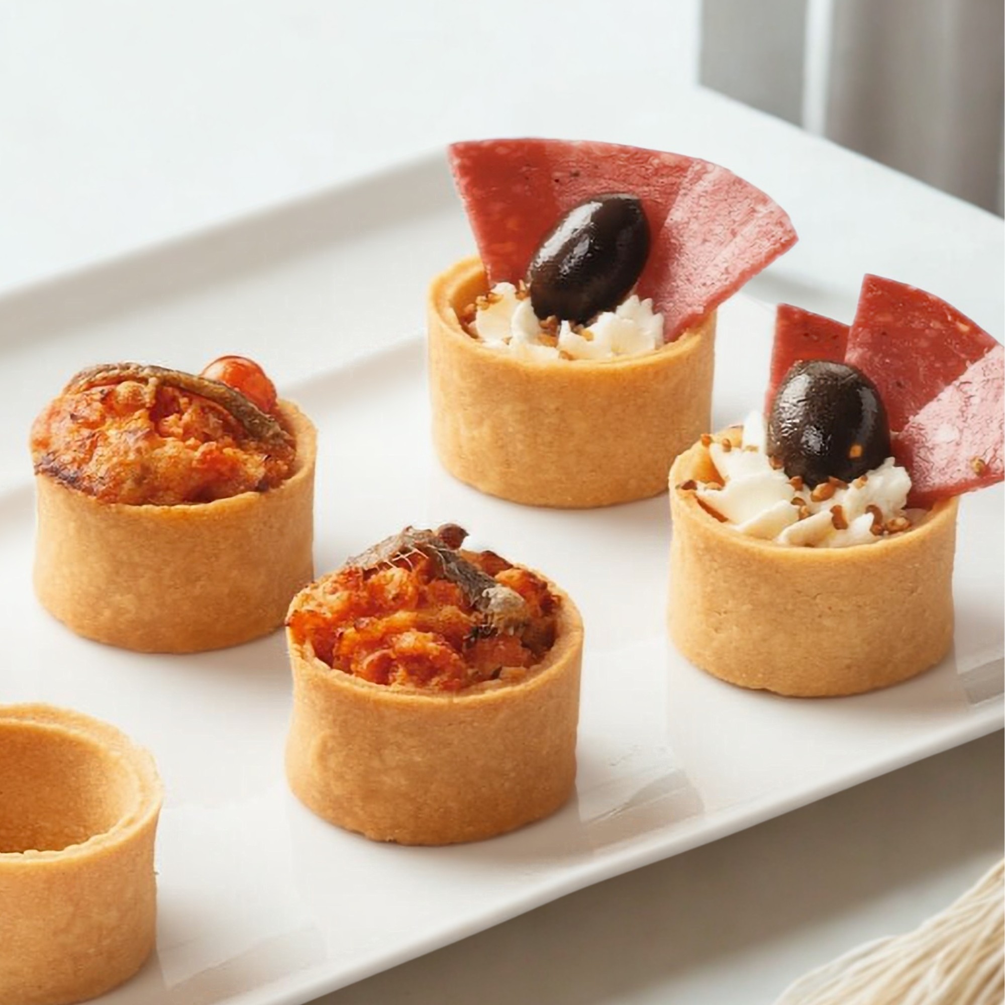 Mini tartaletas para rellenar al gusto. Base extrafina, resistente y ligera. Para disfrutar en un solo bocado.