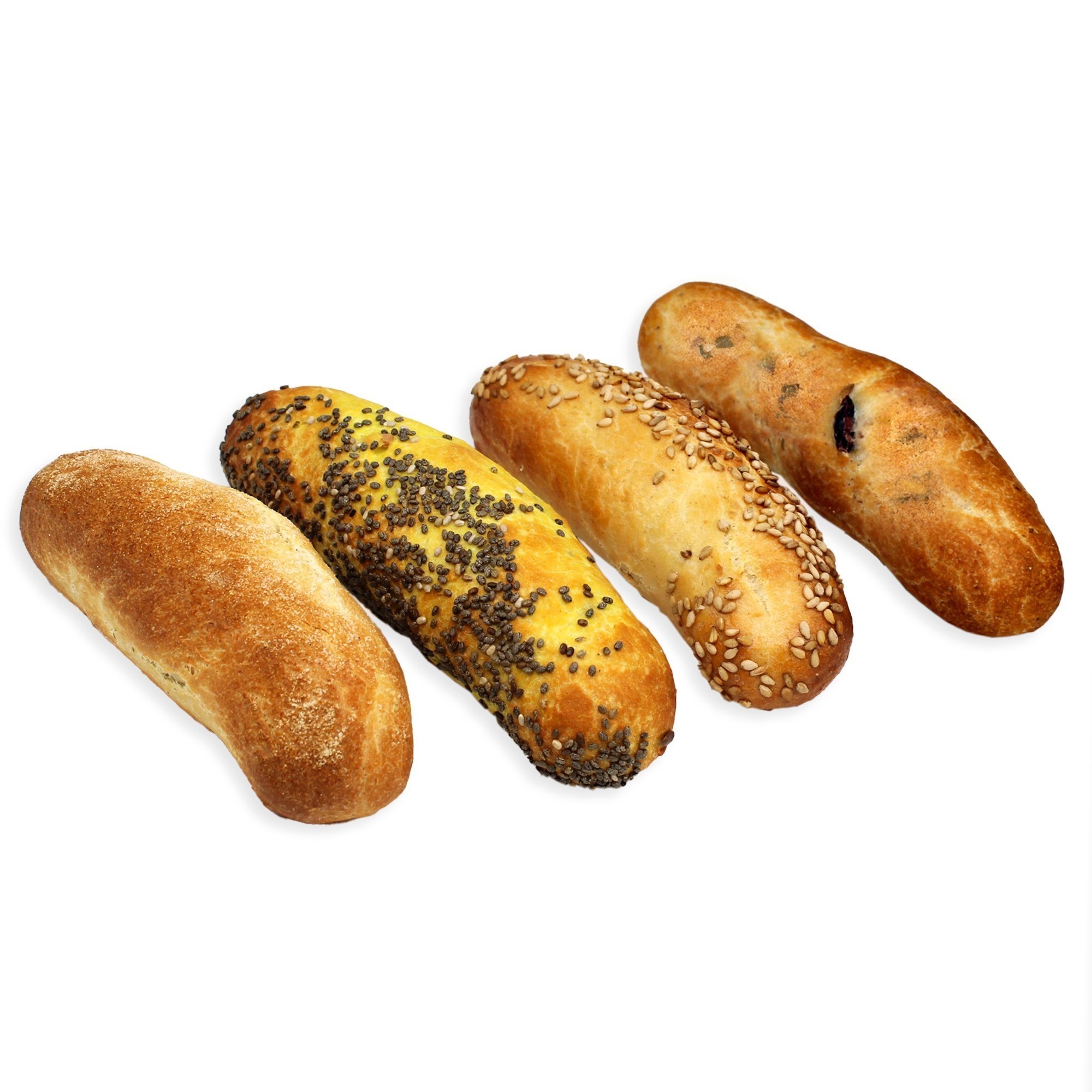 Bastoncillo con Oliva Negra: Sémola de TRIGO duro remolida, agua, gluten de TRIGO blando tipo 00,aceitunas negras 0,8%, levadura de cerveza, sal, dextrosa (de maíz), levadura natural,emulsionante: E472 (ésteres diacetiltartáricos de mono y diglicéridos de ácidos gordo).Bastoncillo Masa Madre: Sémola de TRIGO duro, agua, levadura de cerveza, sal, dextrosa (de maíz),gluten de TRIGO blando, levadura natural procedente de harina de TRIGO blando tipo 0,emulsionante: E472e (ésteres diaceceltartáricos de mono y diglicéridos de ácidos grasos).Bastoncillo con Sésamo: Sémola de TRIGO duro, agua, levadura de cerveza, sal, dextrosa (de maíz), gluten de TRIGO blando, levadura natural procedente de harina de TRIGO blando tipo 0, emulsionante: E472e (ésteres diaceceltartáricos de mono y diglicéridos deácidos grasos), semillas de SÉSAMO (1%).Bastoncillo con semillas de Chia y Cúrcuma: Sémola de TRIGO duro, agua, pipas de girasol, semillas de SÉSAMO, semillaslino, harina integral de ESPELTA, harina integral de TRIGO duro tuminia, harina de AVENA 2%, semillas de chía 0,8% (Silvia hispanica), semillas de mijo, levadura de cerveza, dextrosa (de maíz), sal, masa madre seca TRIGO, masa madre (harina de TRIGO blando tipo Š0‹, agua), cúrcuma 0,2%.